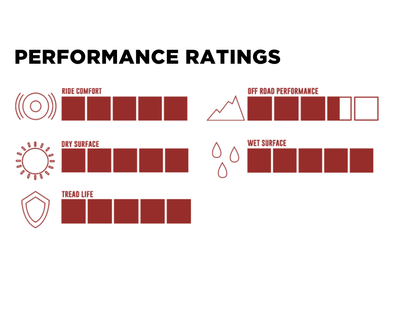 - OFF ROAD PERFORMANCE - Advanced compound prevents chipping and delivers a longer tread life with more consistent contact surface to deliver a smooth and controlled ride.