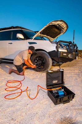 The most popular in our range, the ARB High Output Air Compressor has been constructed entirely of lightweight, high-grade materials and is available in both portable and vehicle mounted configurations. With a class-leading flow rate, this compressor has been designed for Air Locker activation (on-board model), fast tyre inflation and a range of other functions whether they be for work or play. The vehicle mounted kit comes with a full wiring loom and mounting hardware for easy installation, whilst the portable kit includes a 6 metre air hose, battery clamps, inflation kit and a durable carry case.