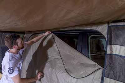 Designed to function as a fully enclosed room or mosquito net, the new ARB Deluxe awning room with floor provides protection from the weather, insects and provides additional privacy. Easy and quick to set up the ARB Deluxe awning room can be used with 2500 and 2000 model awnings and features a durable waterproof floor and its own separate ceiling to help keep you cooler.