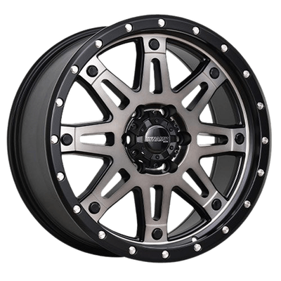 The Dynamic Outlaw is an aggressive looking 4--4 wheel in a featuring 8 split spokes in a dark tint finish with a black lip. Available to suit a range of popular utes & 4WD's incl Hilux, Triton, Colorado and Ranger (requires flares).