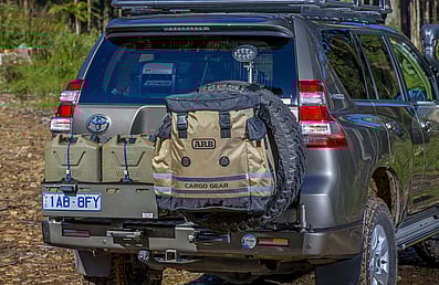 The Track Pack from 4WD Solutions - I liked the idea of externally storing the smelly stuff. The design gives you a few extra pockets for storing stuff that you often need when working on or around the outside of the truck. In my case, the obligatory Morley's on one side, some rubbish bags and window wiper fluid on the other, and a couple of levelling blocks in the side." - Kerry